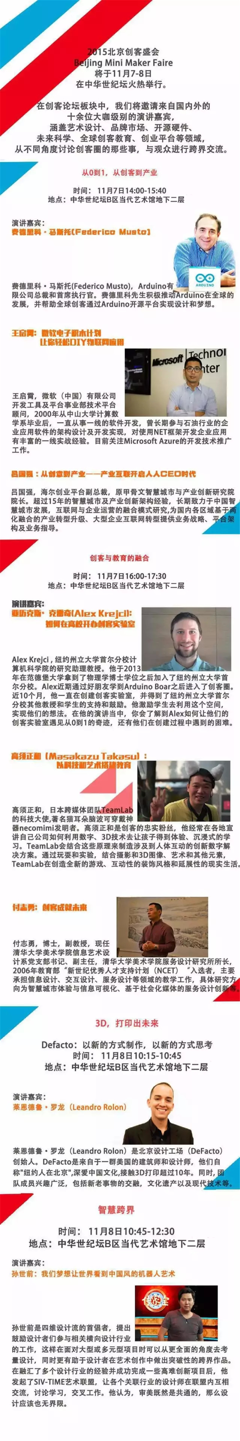 2015BeijingMiniMakerFaire北京MakerFaire都邀请了十余位大咖级演讲嘉宾涵盖艺术设计、品牌市场、开源...