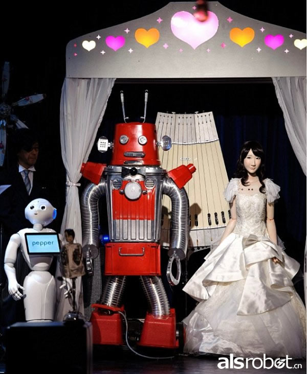【新奇特】东京举办首次机器人婚礼“新郎”伸嘴献吻