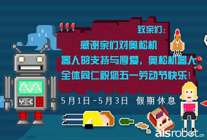 亲爱的小伙伴儿们:感谢亲们对奥松的支持与厚爱,五一劳动节来临之际,哈尔滨奥松机器人科技有限公司全体同仁预祝各位新老朋友节日快乐!玩...